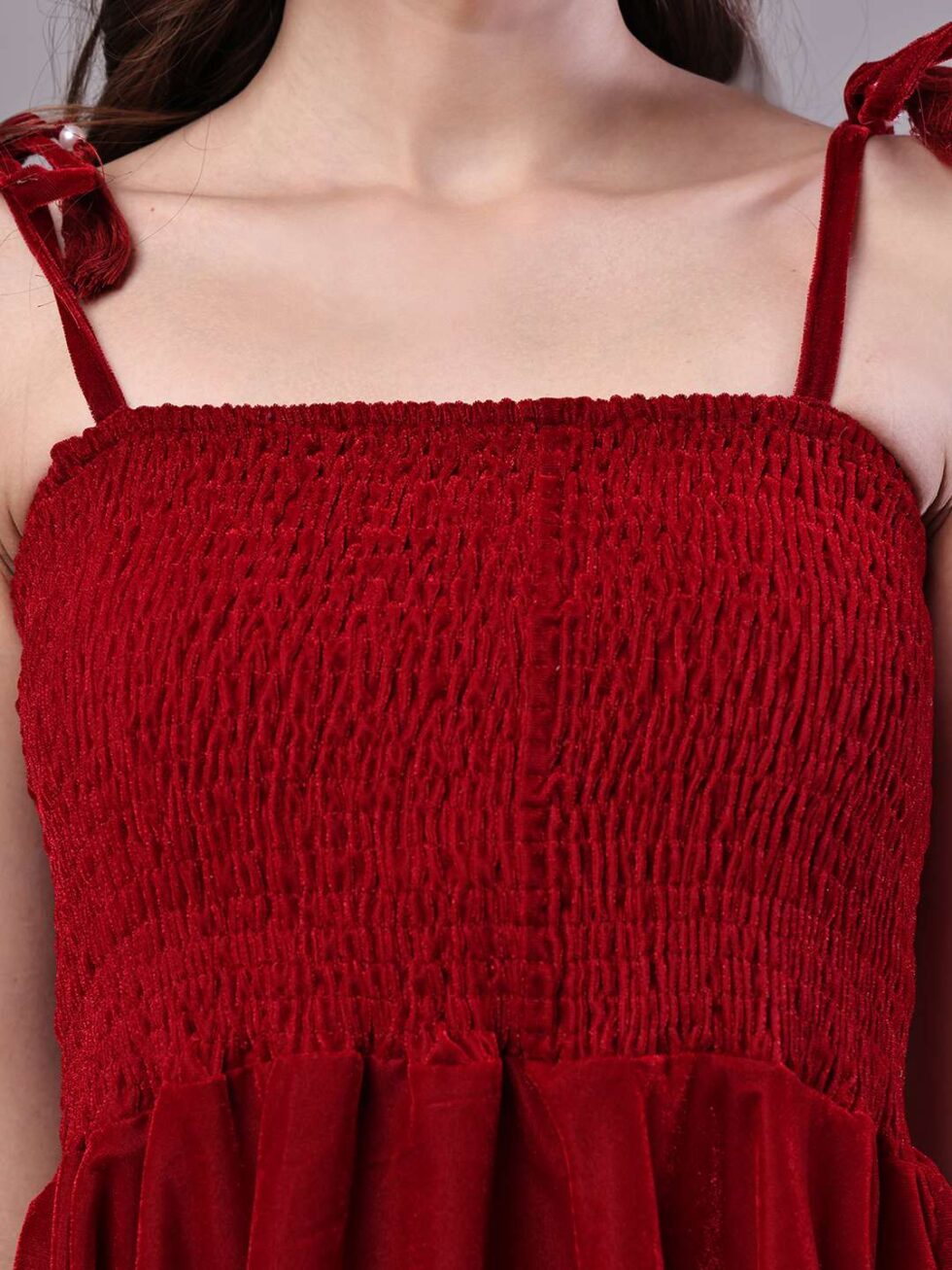 Be the first to review “Women’s Junglee Velvet Maroon Handkerchief Hem Dress”